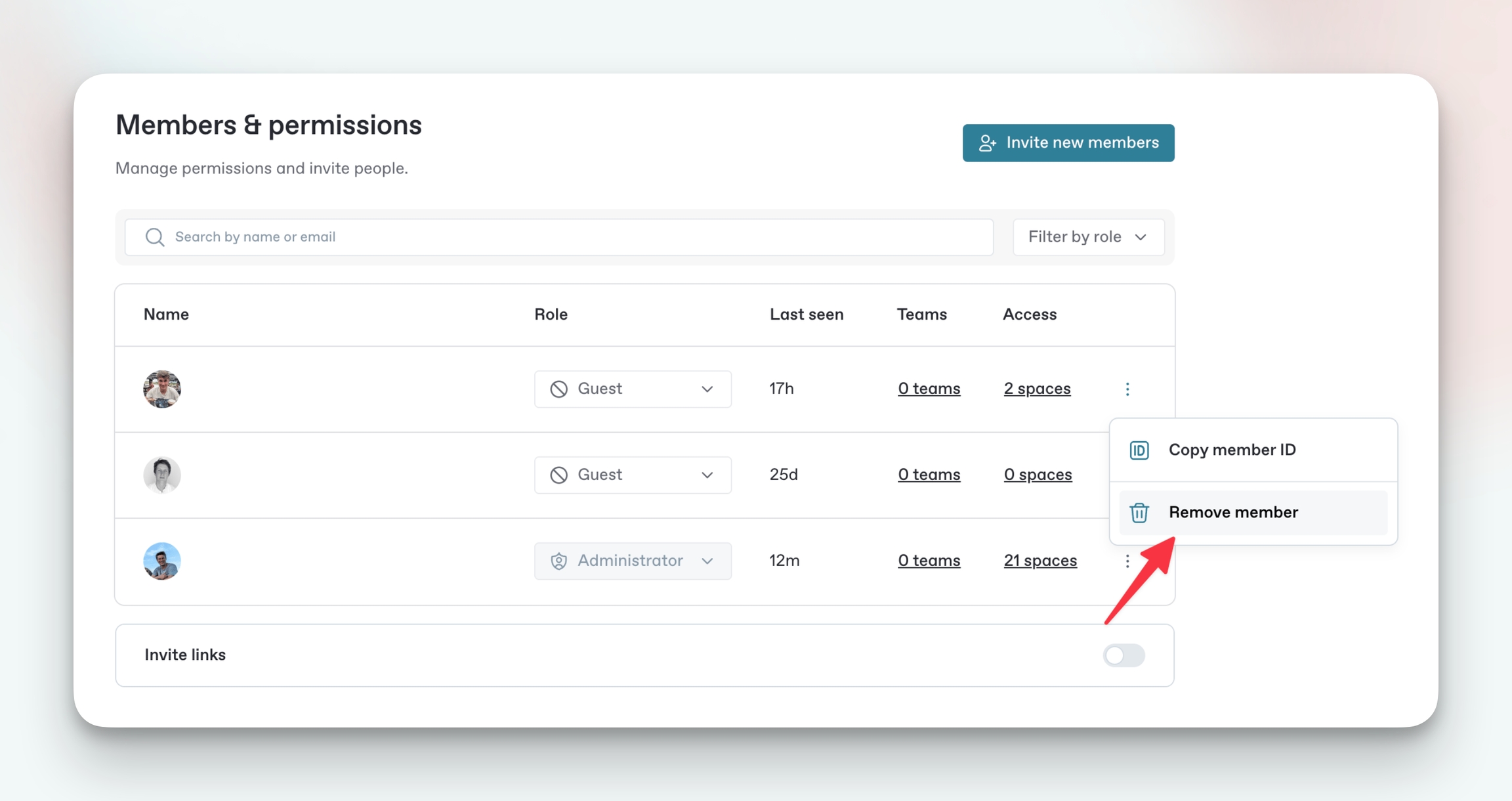3. Click the three-dot option menu next to the member you want to remove.